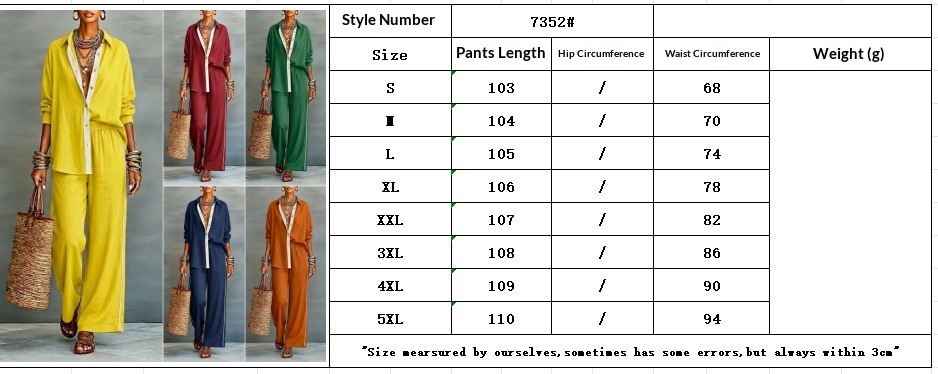 Contrast-color Casual Solid-color Loose Pants Two-piece Set